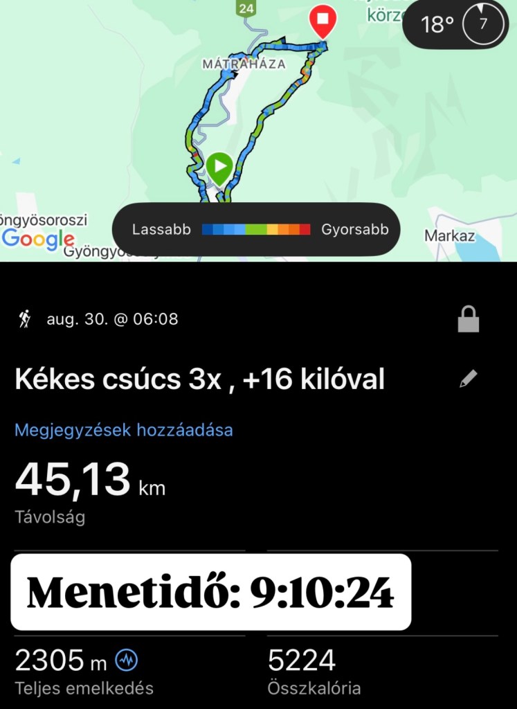 - Összesen 45.13 km lett a megtett távolságuk és 2305 méter szintemelkedést teljesítettek.