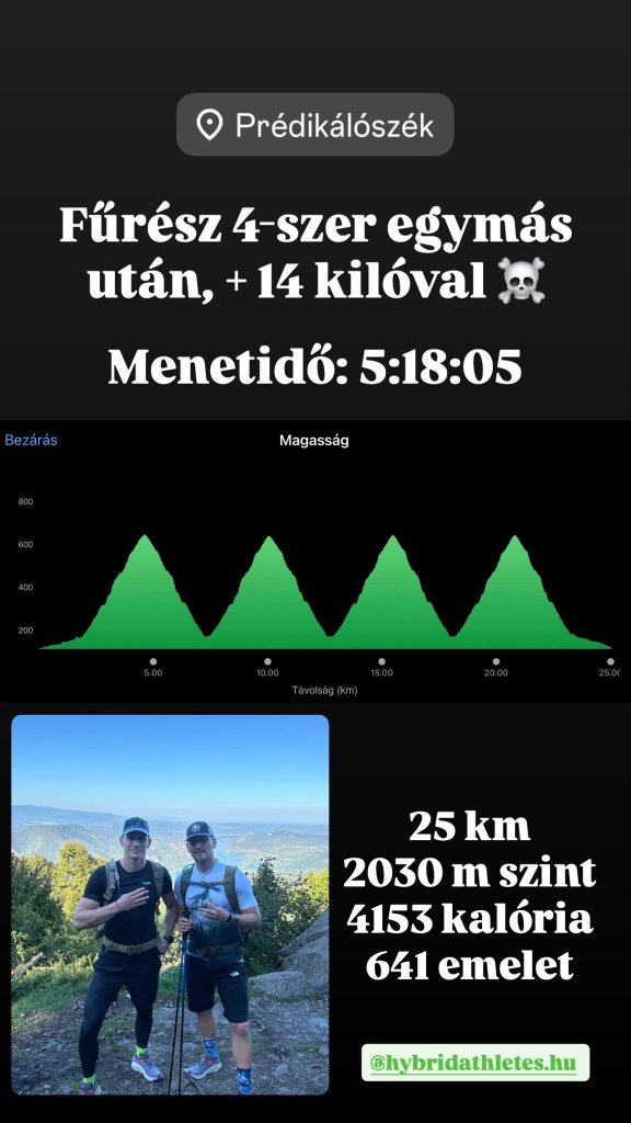 A tegnapi napon plusz 14 kilóval, egymás után négyszer teljesítettük a hírhedt Fűrészt. A terepfutó berkeken belül ez egy rettegett terep, hiszen 2 és fél km alatt, közel 500 méter szintemelkedést kell teljesíteni, ami plusz súly nélkül is nagy kihívás. A túra a Szentfa-Kápolnától indul és a Prédikálószéki csúcsnál tetőzik.